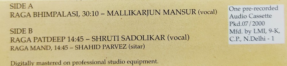 | Title | : | Afternoon Ragas Vol.3 : Mallikarjun Mansur/Shruti Sadolikar |