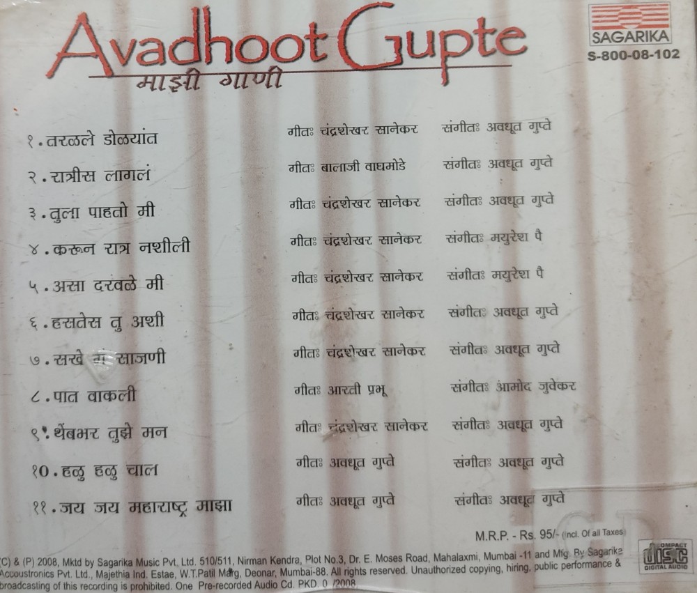 | Title | : | Avadhoot Gupte – Majhi Gaane (Marathi) |