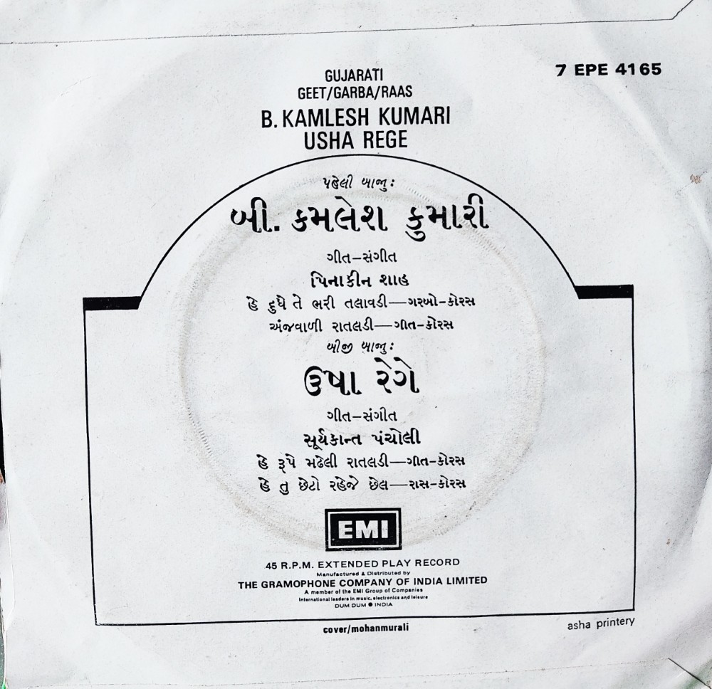 Record Title : B Kamlesh Kumari/Usha Rege : Gujarati Geet/Garba/Raas