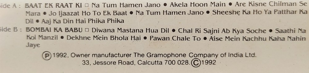 | Title | : | Baat Ek Raat Ki/Bombai Ka Babu |