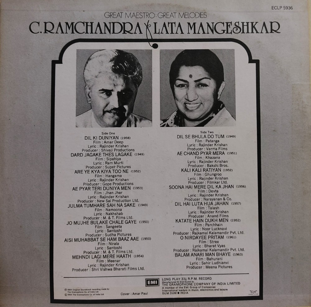 | Record Title | : | C Ramachandra – Lata Mangeshkar : Great Maestro – Great Melodies |