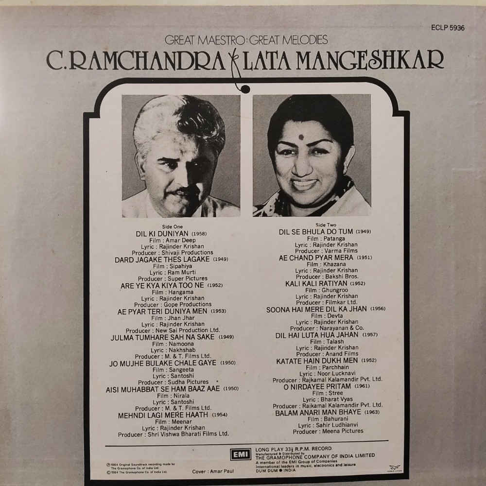 | Record Title | : | C Ramachandra – Lata Mangeshkar : Great Maestro – Great Melodies |