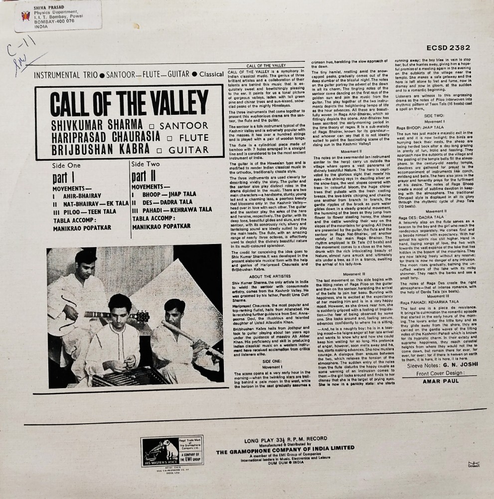 Record Title : Call of the Valley : Instrumental Trio : Santoor – Flute – Guitar
