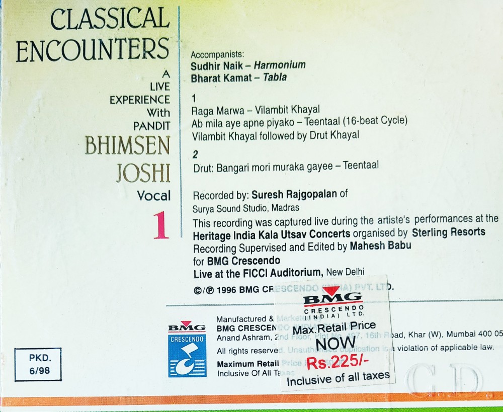 | Title | : | Classical Encounters – A Live Experience With Pt. Bhimsen Joshi |