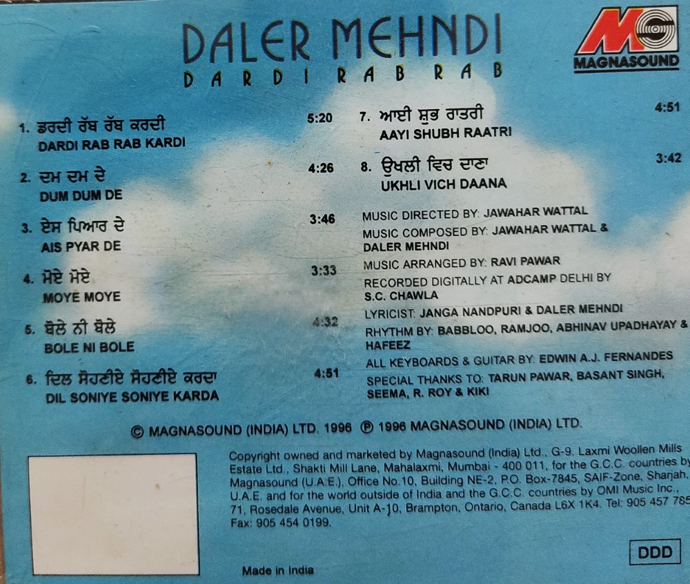 | Music Direction | : | Jawahar Wattal/Daler Mehndi |