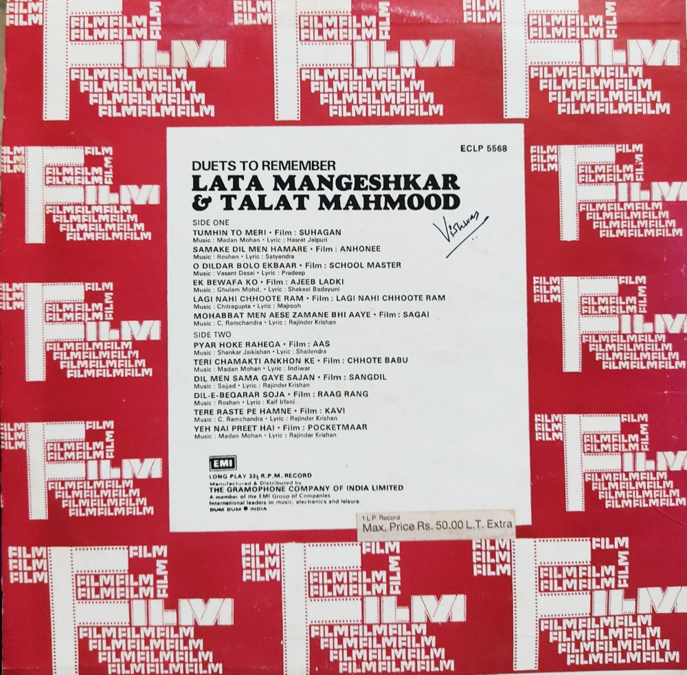 | Record Title | : | Duets to Remember : Lata Mangeshkar & Talat Mahmood |
