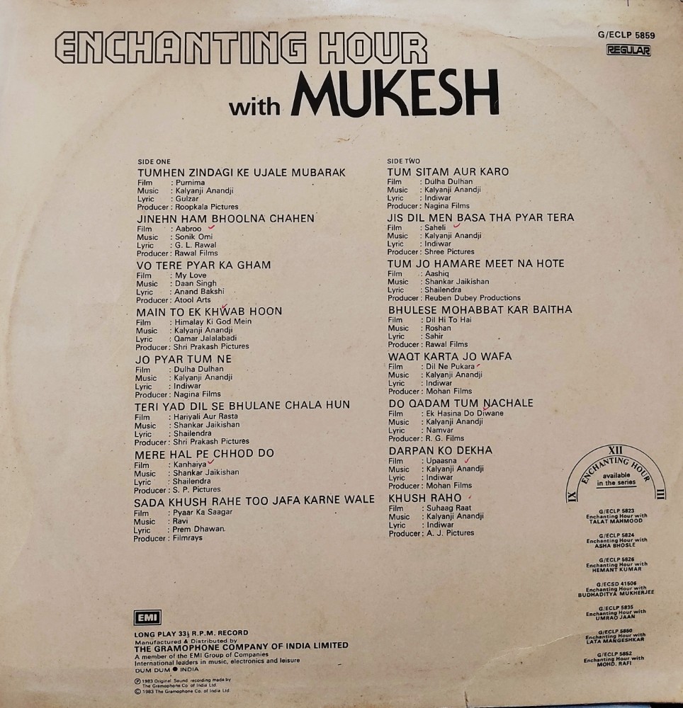 | Record Title | : | Enchanting Hour With Mukesh |