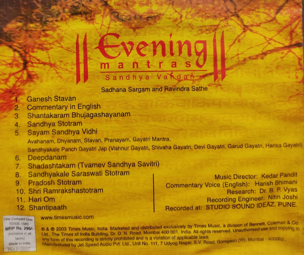 Title : Evening Mantras – Sandhya Vandan : Sadhna Sargam & Ravindra Sathe