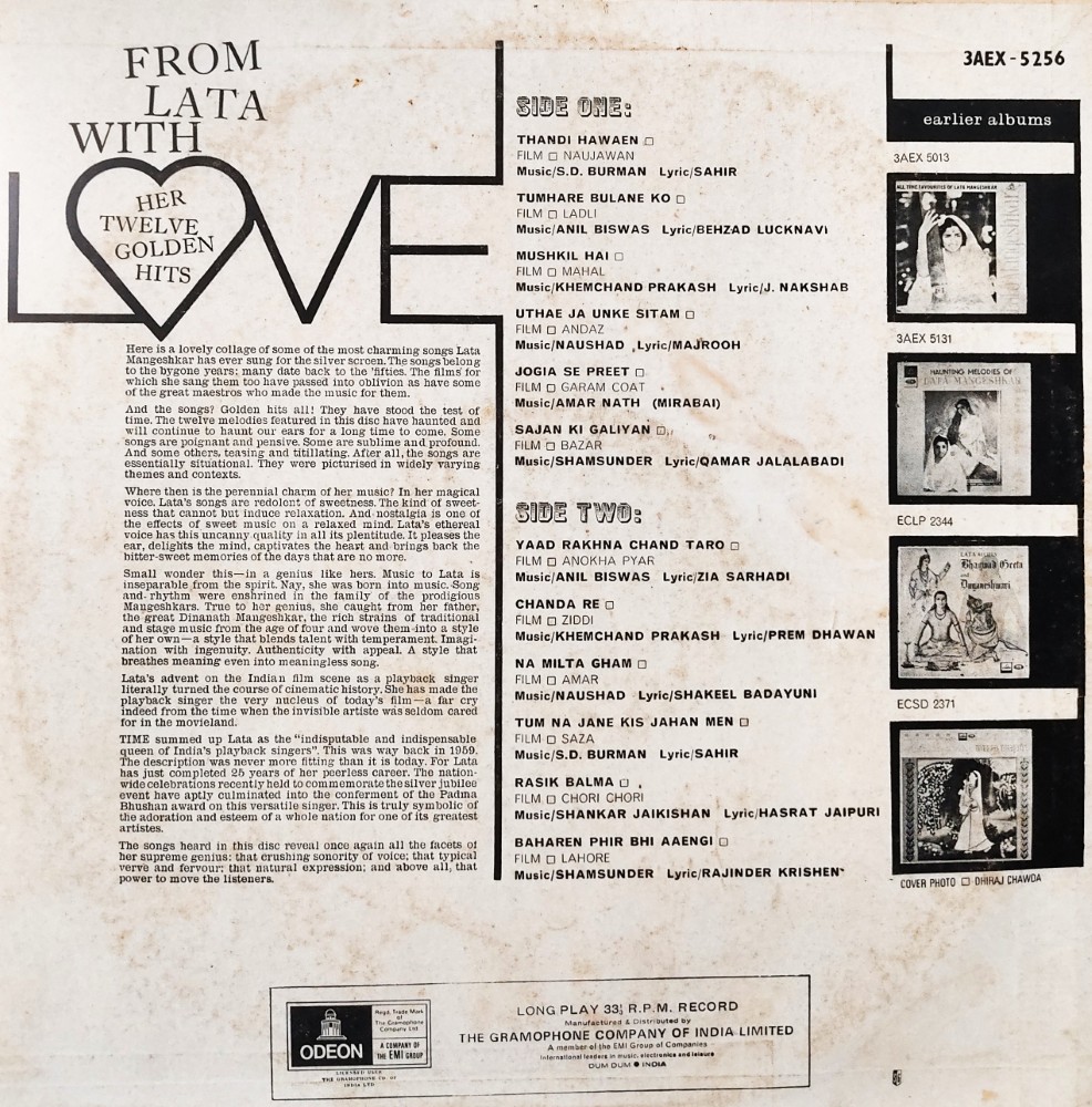 Record Title : From Lata With Love – Her Twelve Golden Hits