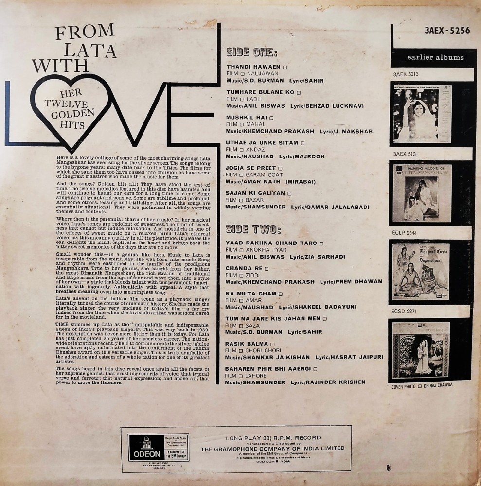 | Record Title | : | From Lata With Love – Her Twelve Golden Hits |