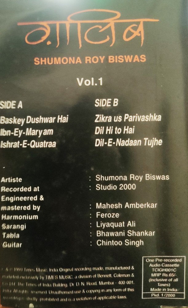 | Title | : | Ghalib – Sumona Roy Biswas & Somesh Kumar Vol.1 & 2 (2 Cassettes) |