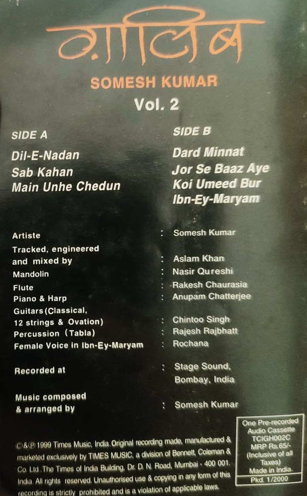 Ghalib – Sumona Roy Biswas & Somesh Kumar Vol.1 & 2 (2 Cassettes)