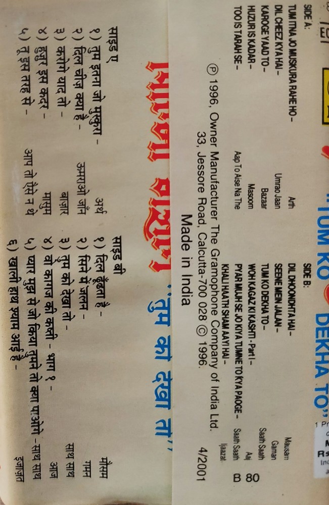 | Title | : | Ghazals From Films – Tum Ko Dekha To |