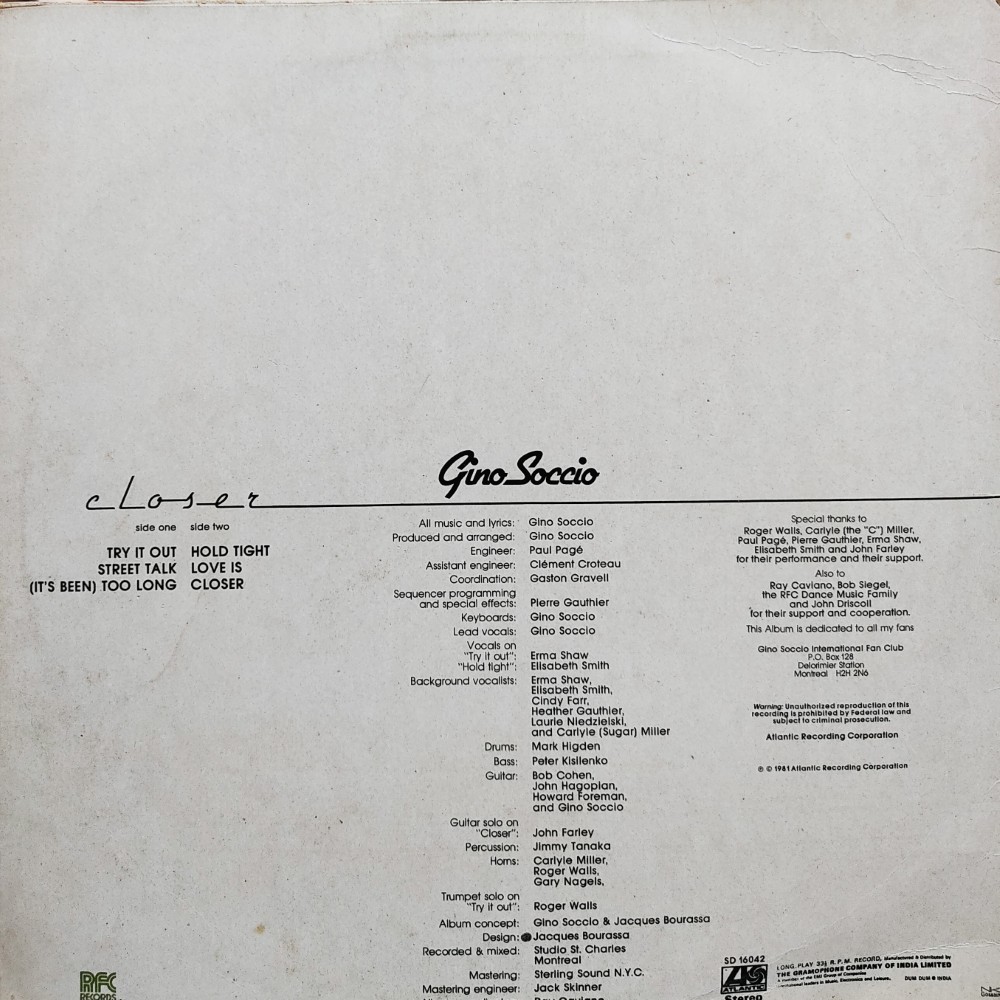 Record Title : Gino Soccio – Closer
