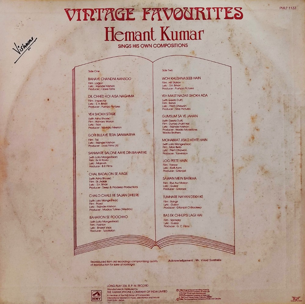 | Record Title | : | Hemant Kumar – Vintage Favourites : Sings His Own Compositions |