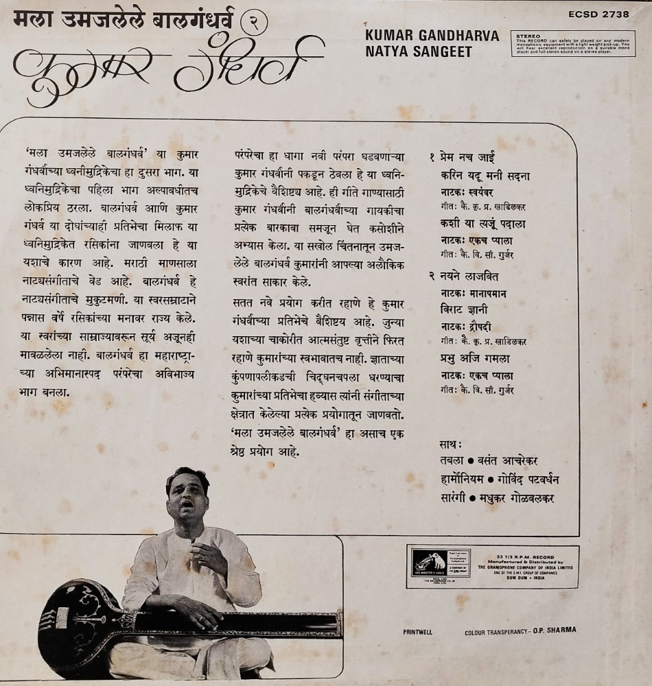 | Record Title | : | Kumar Gandharva – Mala Umajlele Balgandharva 2 : Marathi Natyasangeet |