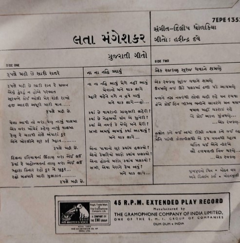 | Record Title | : | Lata Mangeshakar – Gujarati Geeto |
