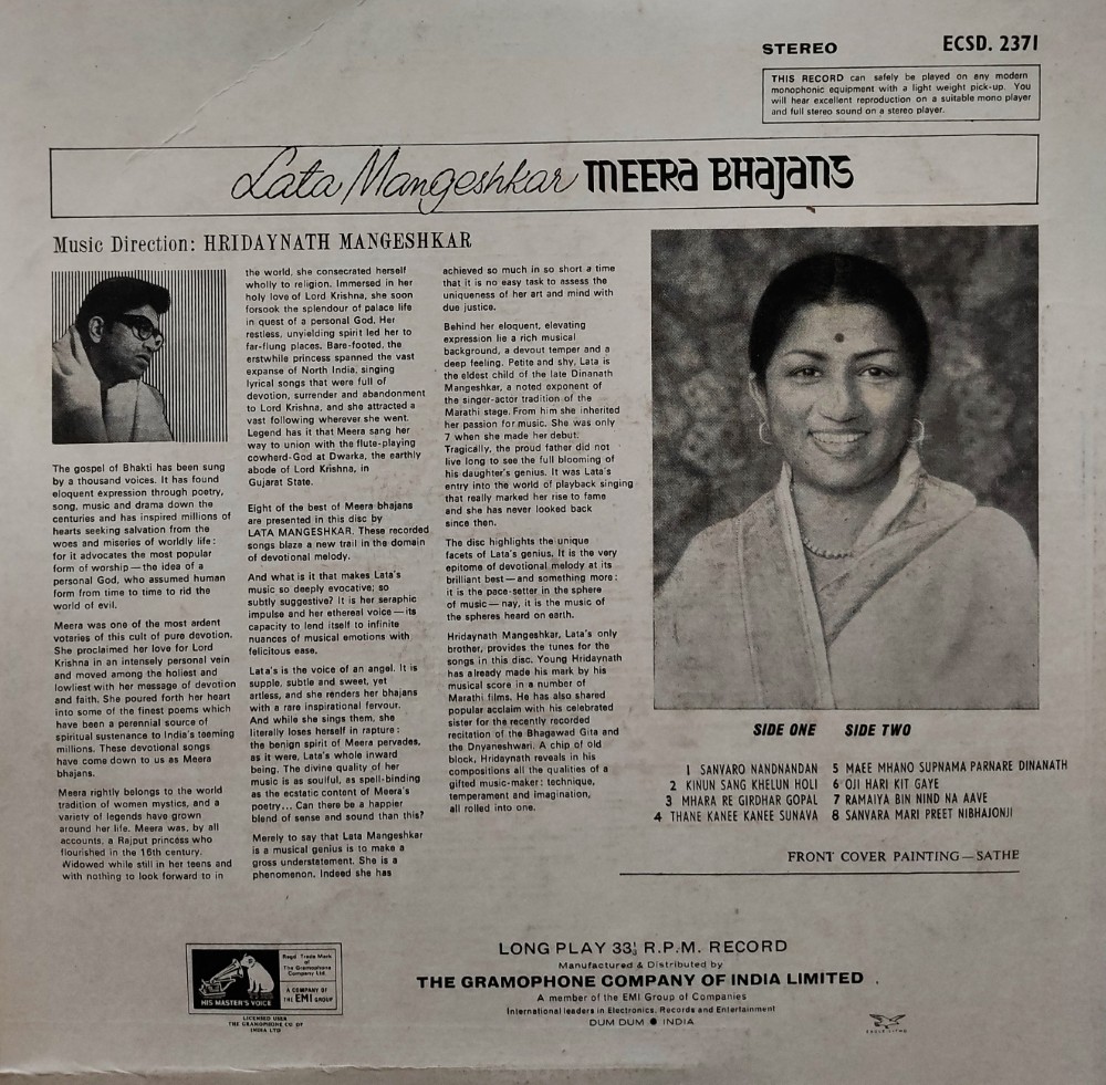 | Record Title | : | Lata Mangeshkar – Meera Bhajans |