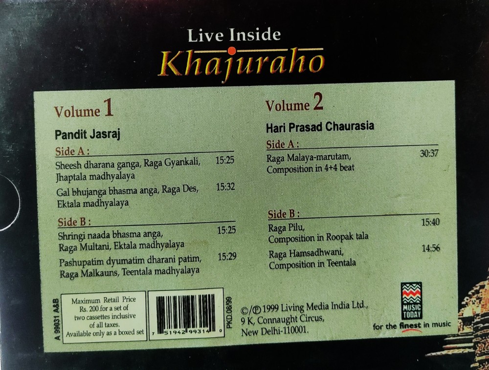 Live Inside Khajuraho : Pt Jasraj – Hariprasad Chaurasia (2 Cassette Pack)