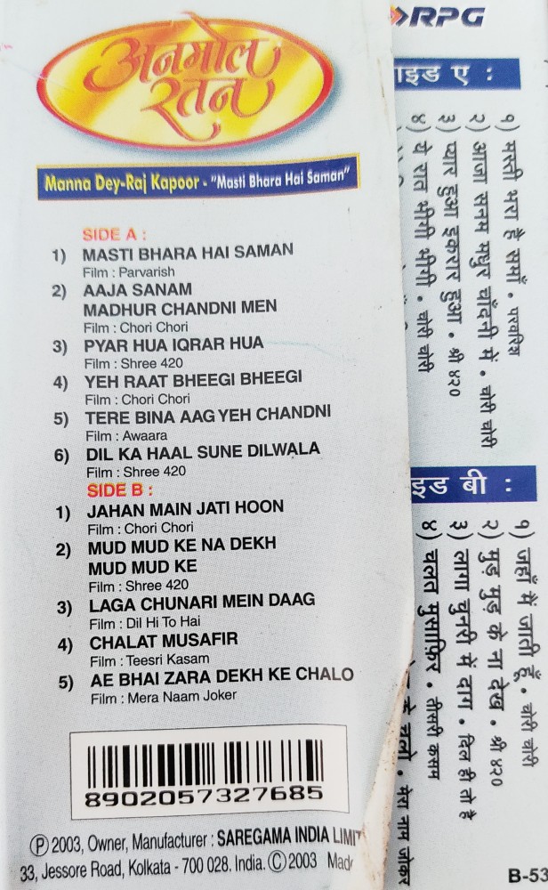 | Title | : | Manna Dey – Raj Kapoor : Masti Bara Hai Saman |