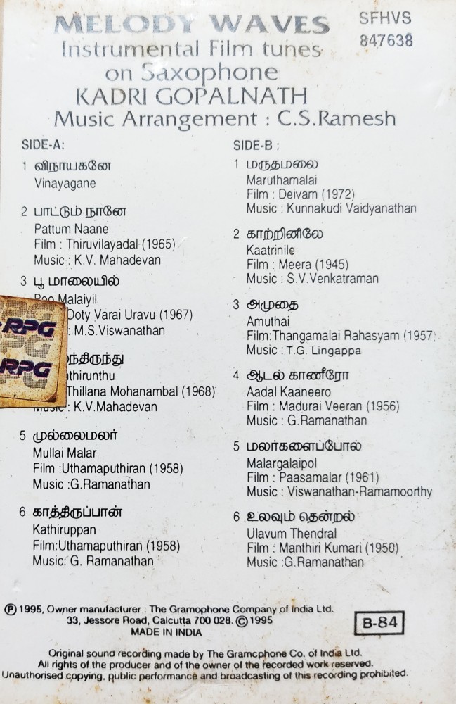 | Title | : | Melody Waves – Kadri Gopalnath : Instrumental Film Tunes |