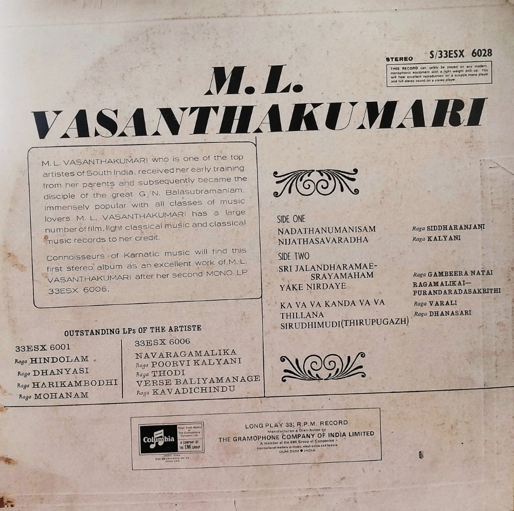 Record Title : ML Vasanthakumari – Classical