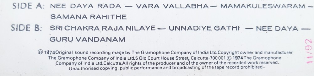 | Title | : | ML Vasanthakumari Sings Guru Vandana |