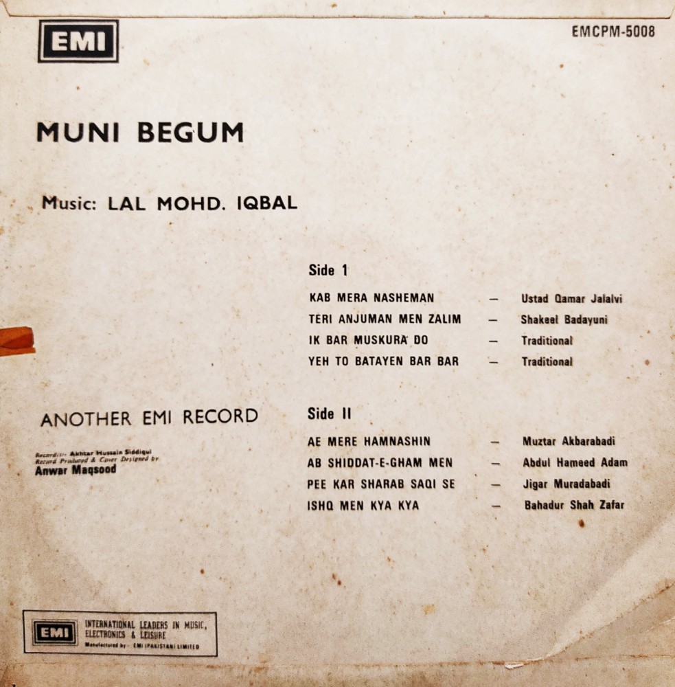 | Record Title | : | Munni Begum Sings Light Ghazals |