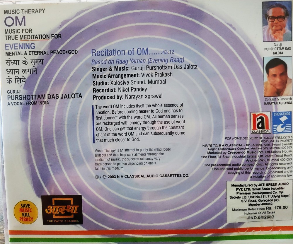 | Title | : | Om – Music For True Meditation for Evening : Guriji Purushottamdas Jalota |