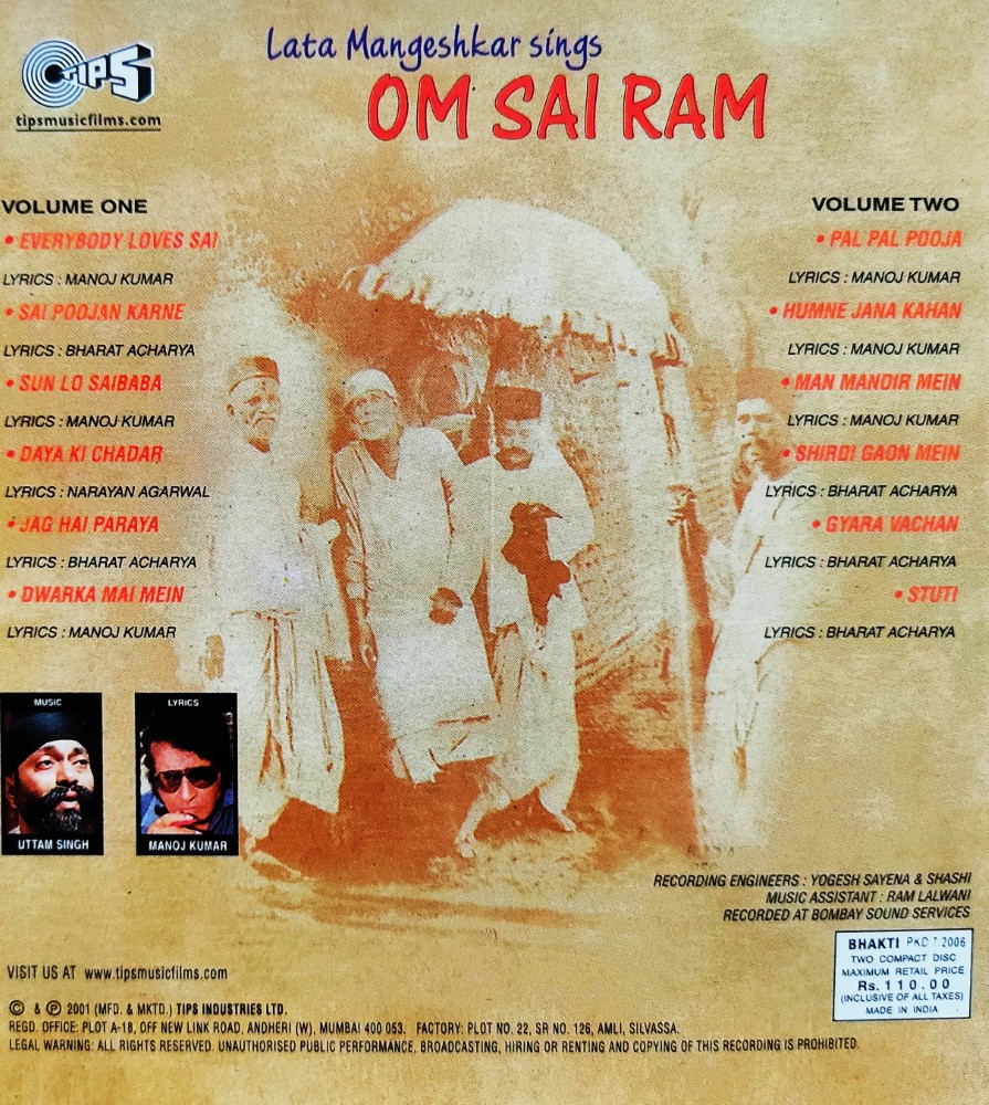 | Title | : | Om Sai Ram – Lata Mangeshkar Vol.1 & 2 (2 CDs) |