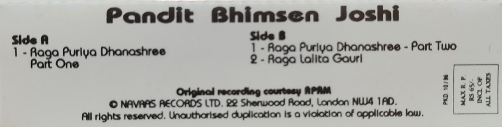 | Title | : | Pt Bhimsen Joshi – Live at ICA July, 1985 |