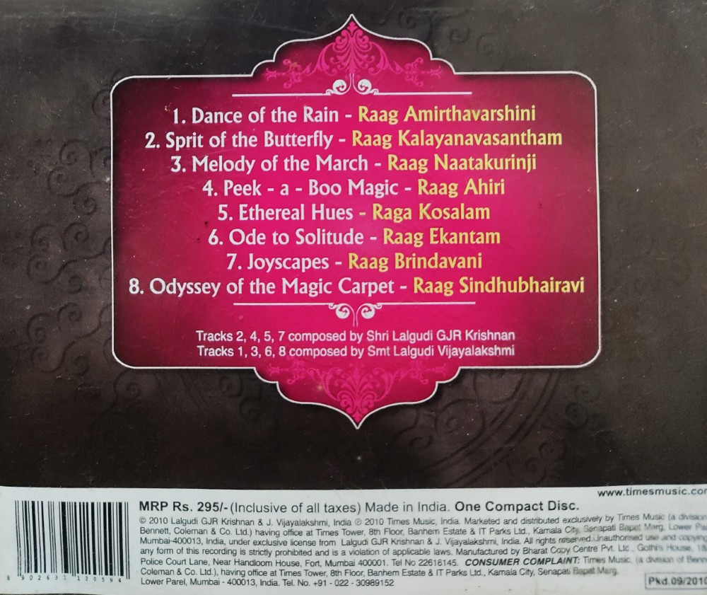 | Title | : | Raga Rasa : Lalgudi GJR Krishnan & Lalgudi Vijayalakshmi |
