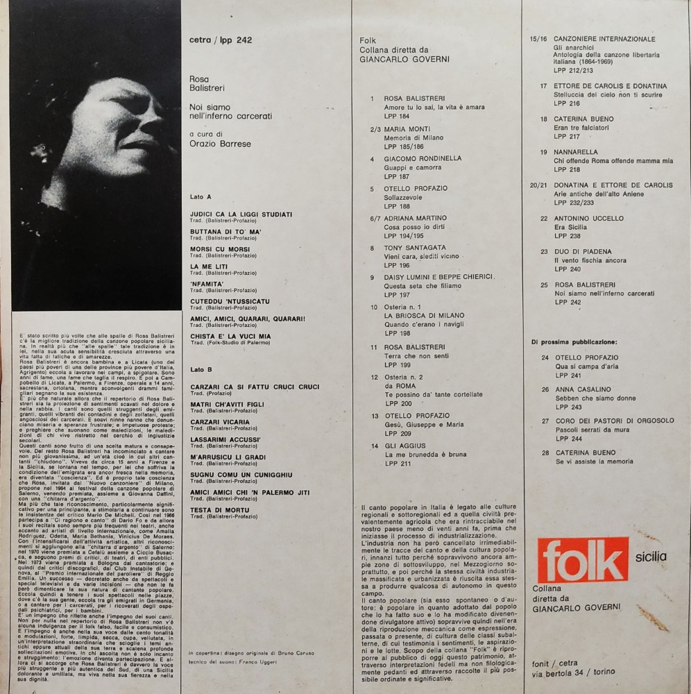 | Record Title | : | Rosa Balistreri – Non Siamo Nell’inferno Carcerati |