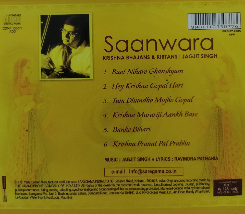 | Title | : | Saanwara – Jagjit Singh : Krishna Bhajans & Kirtans |