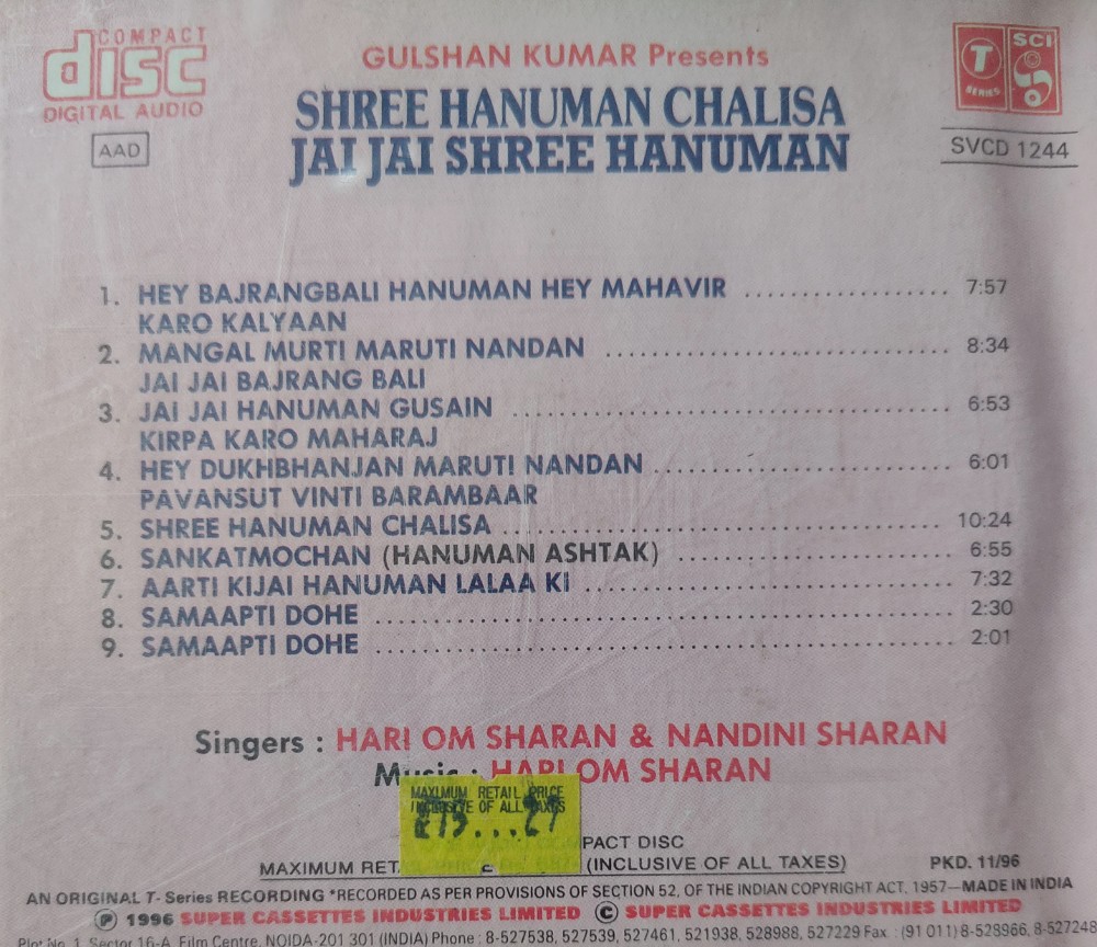 | Title | : | Shree Haunman Chalisa : Hariom Sharan – Nandini Sharan |