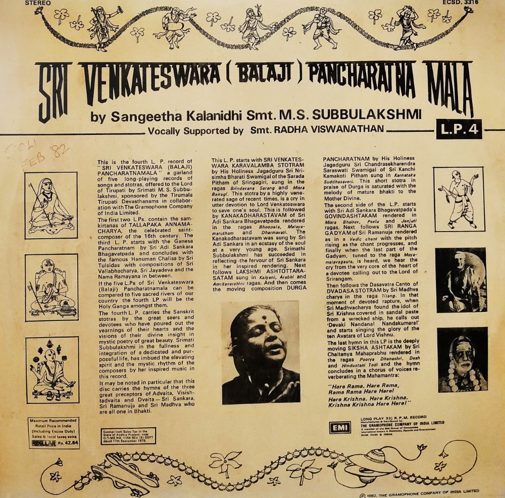 | Record Title | : | Sri Venkateswara (Balaji) Pancharatna Mala LP 4 |