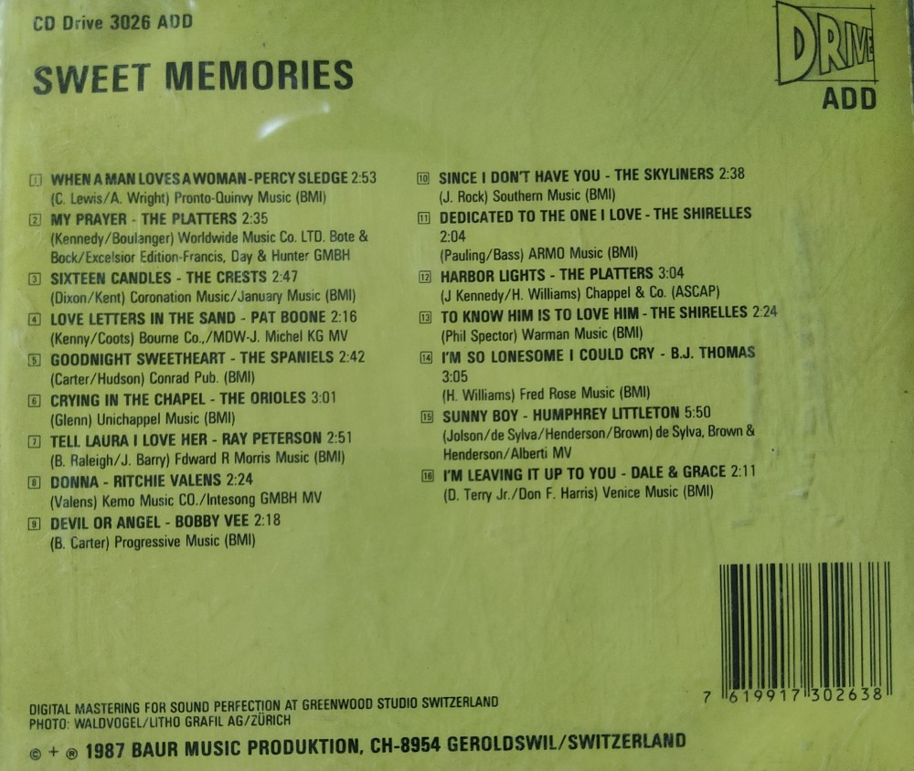 | Title | : | Sweet Memories – Percy Sledge, Pat Boone, The Platters & Many More |