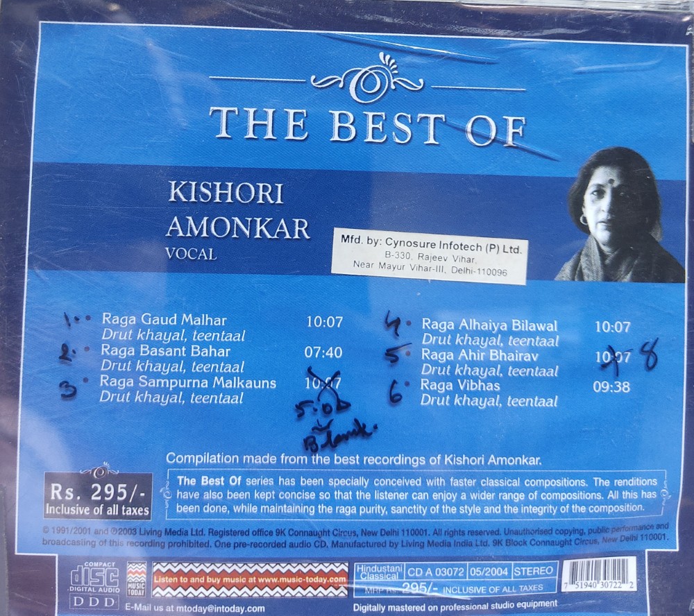 | Title | : | The Best of Kishori Amonkar – Hindustani Classical Vocal |