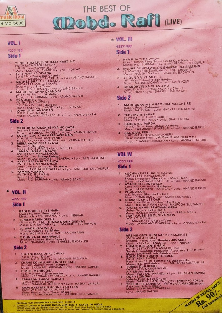 Title : The Best of Mohd Rafi Live (4 Cassette Pack)