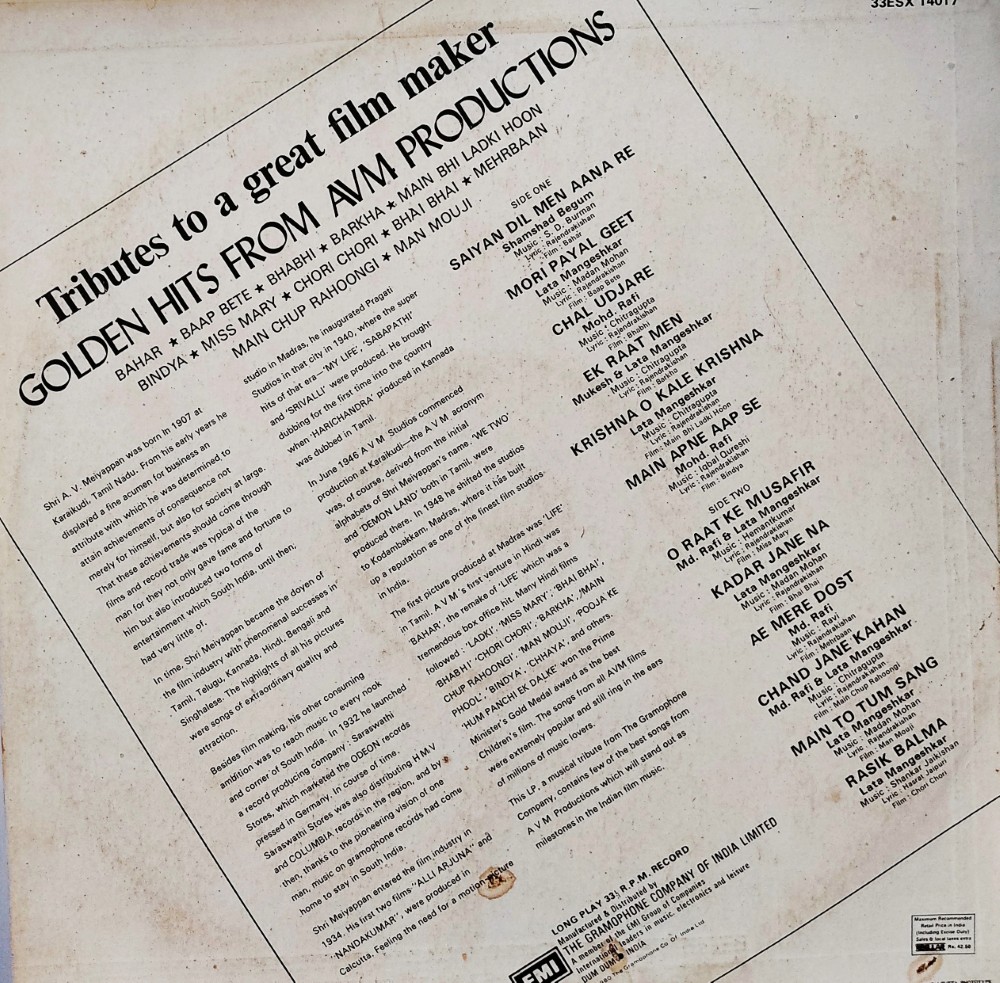 | Record Title | : | Tributes to A Great Film Maker – Golden Hits From AVM |