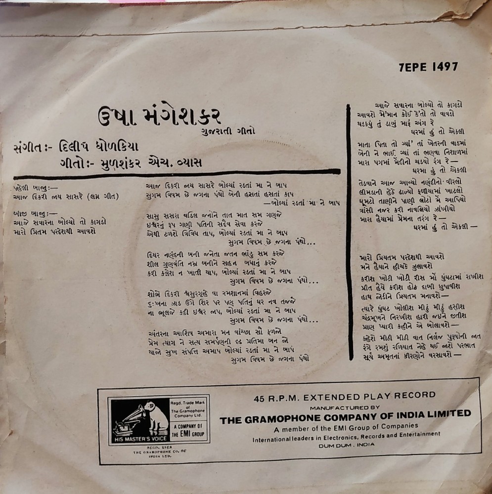 | Record Title | : | Usha Mangeshkar – Gujarati Geeto |