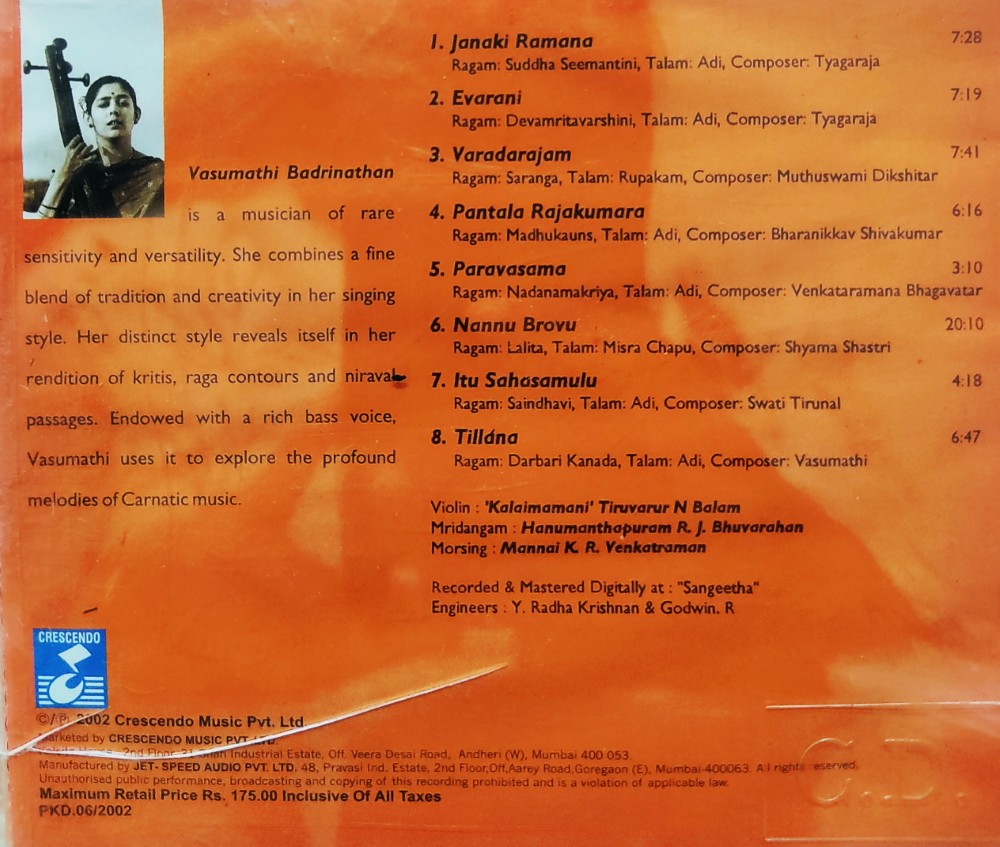| Title | : | Vasumathi Badrinathan : Swaradhwani – Expressions in Carnatic Music |